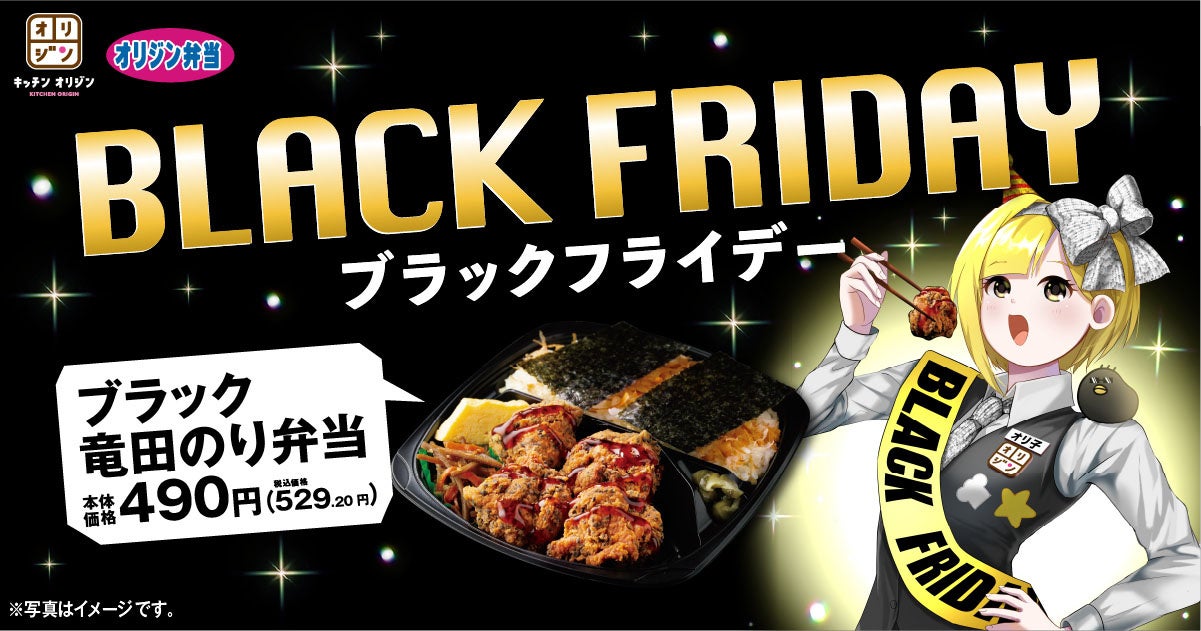 弁当・惣菜専門店「キッチンオリジン」「オリジン弁当」を展開しているイオングループのオリジン東秀株式会社(本社:東京都調布市/代表:沢村 弘也)は、11月16日(水)から11月25日(金)※の間、『ブラックフライデー(BLACK FRIDAY)』を開催し、「ブラック竜田のり弁当」を期間限定で販売いたします。(※ 一部店舗は開催期間が異なります。)