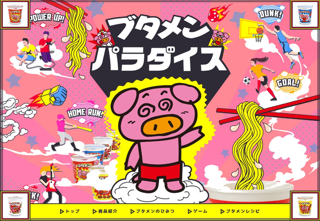 とんこつ味・しょうゆ味・カレー味・タン塩味の4種類から選べる『ブタメン』は、具がないシンプルさゆえに、身近な食材をほんの少しプラスするだけで、もっと楽しく食べられるユニークな商品。そんな簡単で美味しい『ブタメン』のちょい足しアレンジレシピを、特設サイト「ブタメンパラダイス」で多数紹介中!どのアレンジレシピも、マネしたくなる・シェアしたくなること間違いなし!他にも、お湯を注いで待つ時間までも楽しめるゲームコンテンツなど、ついつい誰かに話したくなるブタメンのネタが大集結したブタメンの特設サイト「ブタメンパラダイス」。さぁ、キミの自由な発想で『ブタメン』をもっともっと楽しんじゃおう!!