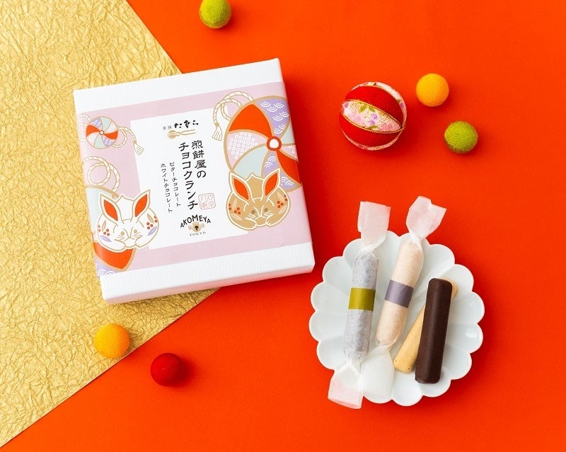 温泉を使って焼いた小麦粉ベースのほんのり甘い煎餅を砕き、チョコレートと合わせた珍しいクランチです。ビターチョコとホワイトチョコ2種類の詰め合わせです。