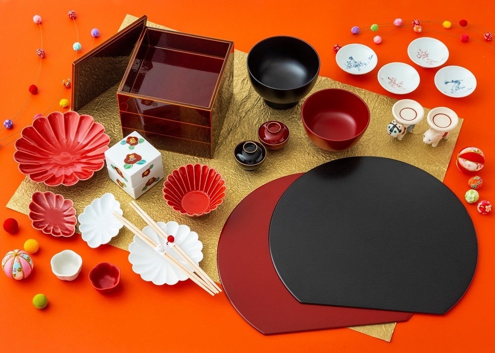 漆椀やお重、小鉢やプレートなど、食卓がぱっと華やぐ器は、お正月の食材をより引き立ててくれます。