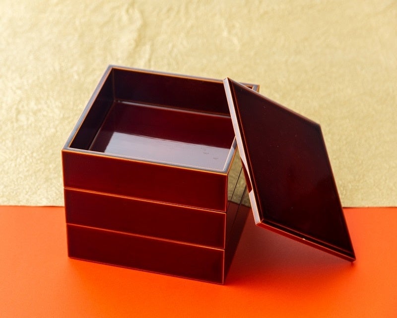 国産ヒバ材で非常に軽い黄金色の漆器、伝統工芸品「飛騨春慶塗」のアコメヤオリジナルのお重箱。和にも洋にもどちらでもマッチします。おせちだけではなく、お弁当やオードブルにも。