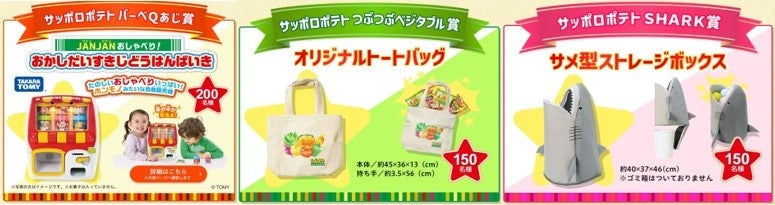 対象商品400円相当を購入して「カルビー ルビープログラム」にて応募すると、「サッポロポテト」の関連グッズ等が抽選で当たる「サッポロポテト50周年ありがとう!キャンペーン」を実施しています。