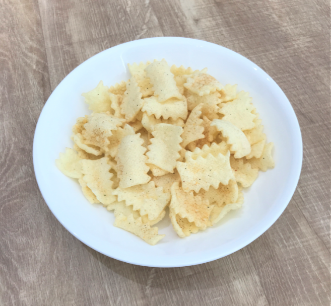 ●サメの歯のような形状の生地で、軽い食感と濃厚な味わいを感じられます。黒胡椒を効かせたベーコンが生地によく合う味わいです。