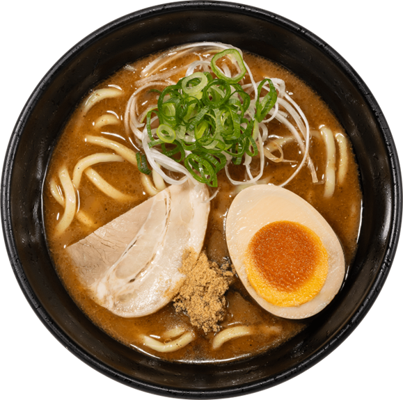 約半年間の開発期間を経て完成したこだわりのスープです。豚骨スープのベースに、コクとパンチを引き出すため国産の鶏肉・豚の背脂(ラード)を煮込んだ出汁を加え、さらに大量の煮干しと鰹出汁、昆布を使用した芳醇な魚介系出汁を加えました。濃厚かつ印象に残る味わいを再現しています。