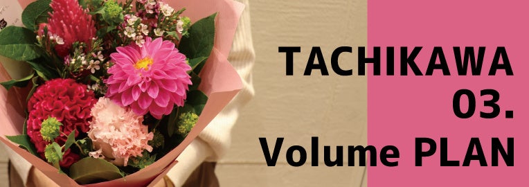 当日12時までにモバイルオーダーでご注文いただくと2,200円(税込)のブーケを月3回まで(①スタンダードプラン)、3,300円(税込)のブーケを月3回まで(②ボリュームプラン)、16時以降にフルラージュアン ルミネ立川店で受け取ることができます。