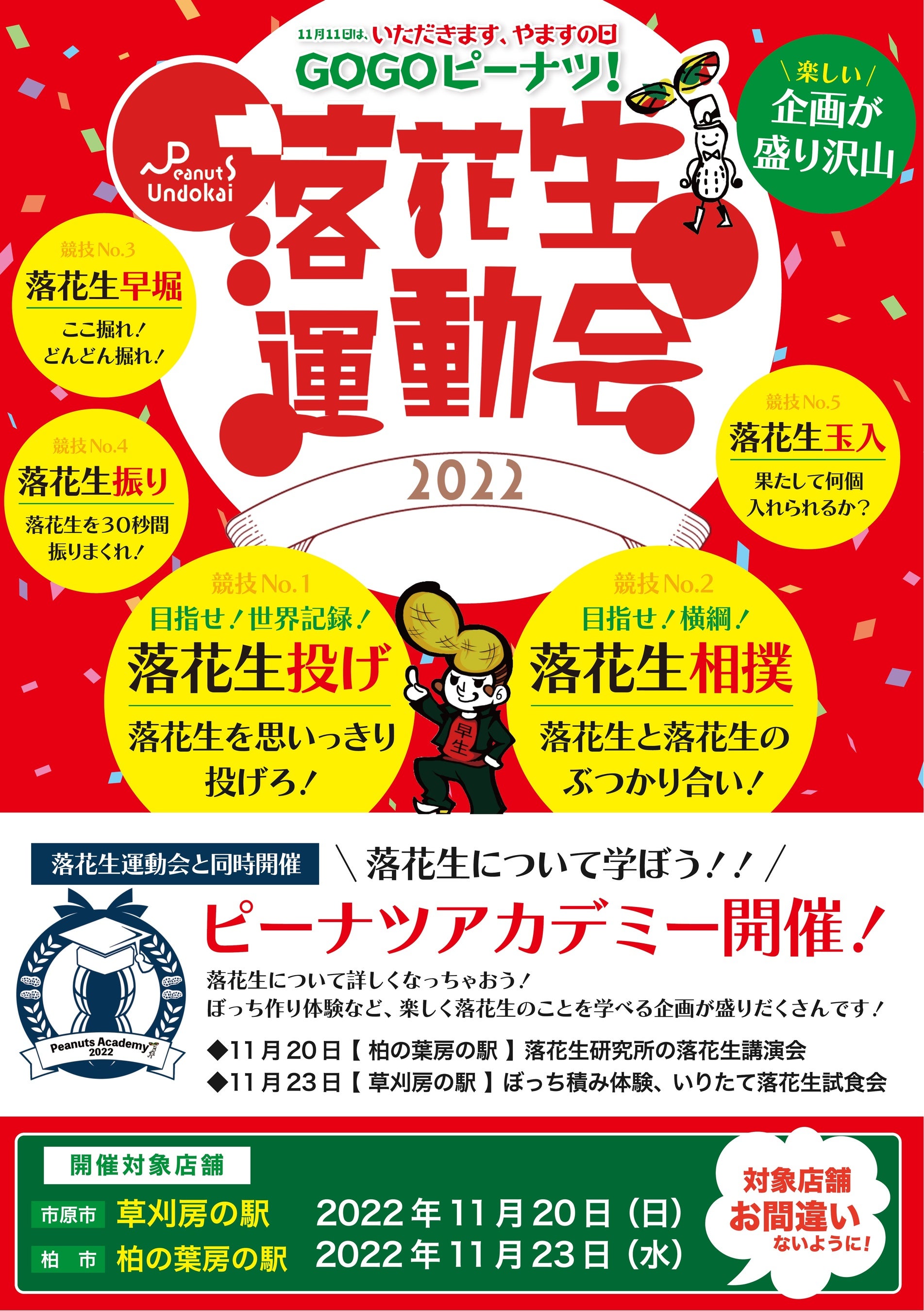 3.運動会と同時開催“ピーナツを学べるピーナツアカデミー” 実施店、日時をご確認ください。
