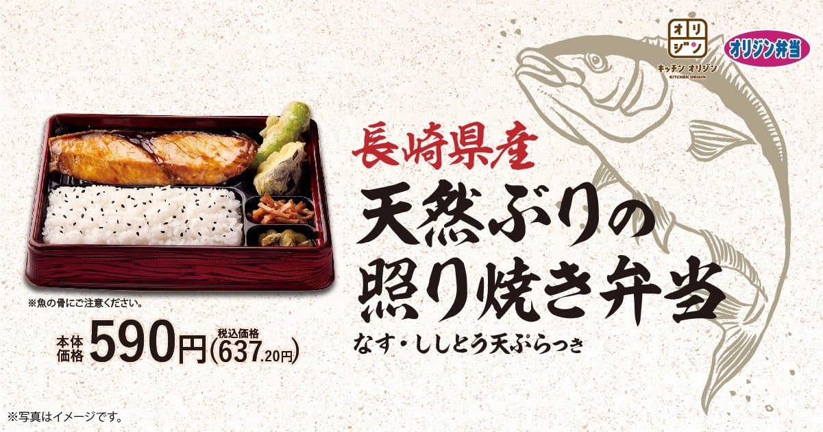 弁当・惣菜専門店「キッチンオリジン」「オリジン弁当」を展開しているイオングループのオリジン東秀株式会社(本社:東京都調布市/代表:沢村 弘也)は、11月12日(土)10時より、「長崎県産天然ぶりの照り焼き弁当」を期間限定で販売いたします。