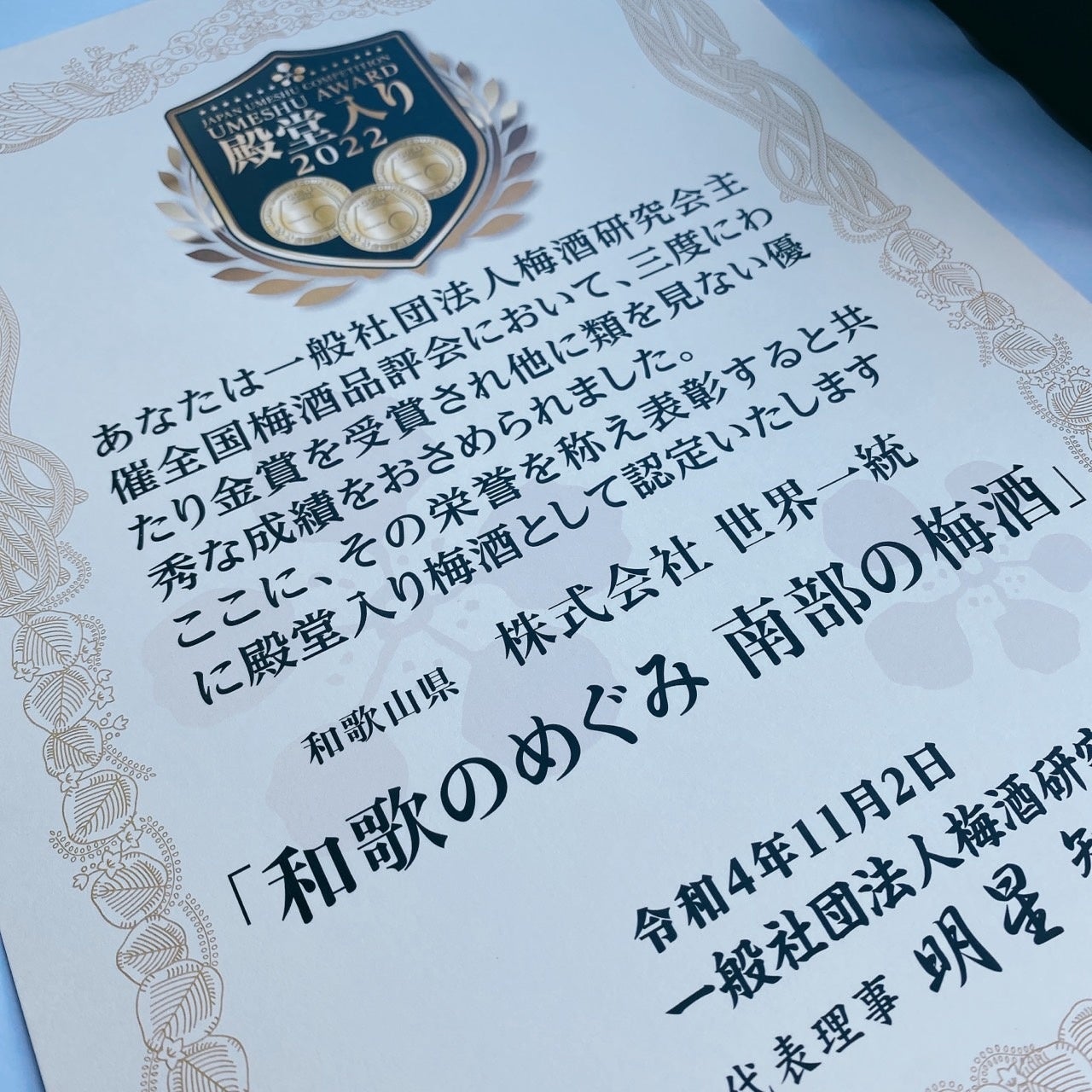 殿3度の金賞 殿堂入りとなった和歌山県 株式会社 世界一統 「和歌のめぐみ 南部の梅酒」