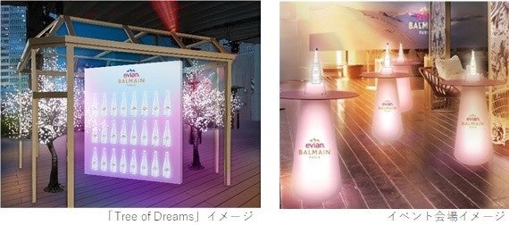 また、今回のコラボレーションを記念して、2022年11月24日(木)~11月26日(土)の3日間限定で「Dream our future together」をテーマとした「エビアン」×「バルマン」の世界観をお楽しみいただけるイベントをCÉ LA VI Tokyo(セラヴィ トウキョウ)で開催します。限定ボトルで作られた「Tree of Dreams」の展示や、特製ドリームカードにご自身の願いを書いてイルミネーションツリーに張り付けることができるイベント、フォトブース、オリジナルドリンクなどをご体験いただけます。フランスを代表する2つのブランドが作り出す革新的でクリエイティブなコラボレーションをお楽しみください。