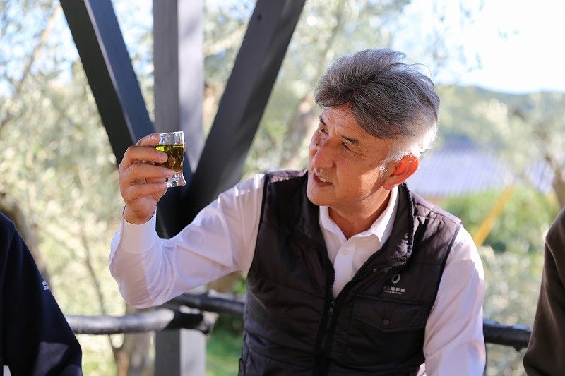 小豆島に戻った井上・大坪は、搾りたてのオリーブオイルを持って園主の元で今年の出来ばえを確認しました。今年のスペインは全土で水不足の影響を受け、干ばつに苦しみました。そのためオリーブの収穫量は半分にまで落ちると言われているほど、厳しい年となりましたが、収穫を迎える直前に雨が降り、実に水分が蓄えられた影響で苦みや辛みが少し抑えられました。その分フルーティーでバランスの良い味わいになり、これぞ緑果オリーブオイルというキリっと爽やかですっきりと澄んだ味が楽しめます。