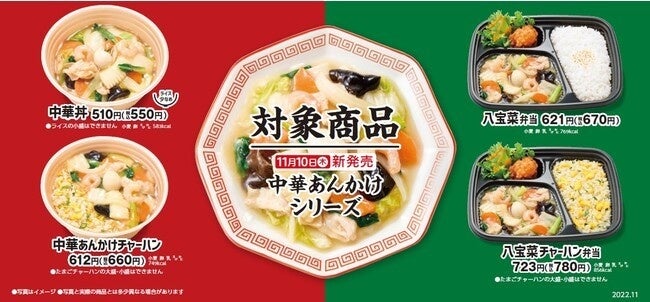 概要:「中華丼」「八宝菜弁当」「中華あんかけチャーハン」「八宝菜あんかけチャーハン」のいずれか※2を