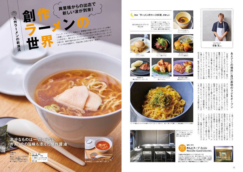 創作ラーメンの世界フレンチやイタリアンなど、異なるジャンルで道を究めた料理人たちが作るラーメンが続々と登場している昨今のラーメン界。道を極めた匠たちが本気でラーメンと向き合い、九州ラーメンのボーダーレス化を加速させています。本特集では特に注目を集める7店を紹介します。