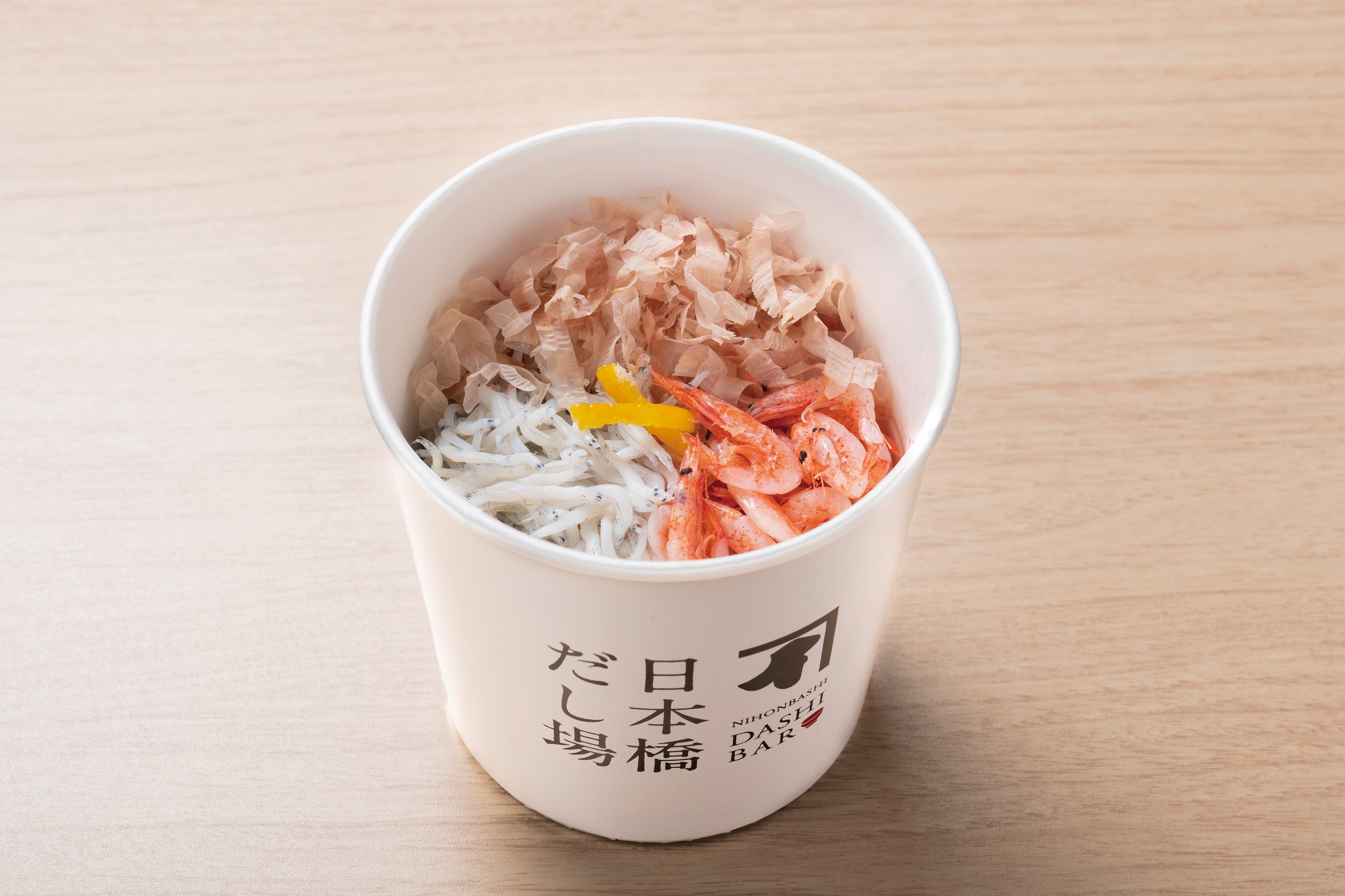駿河湾産の桜えびやしらすに、にんべんの本枯鰹節を合わせた「しずおか尽くしかつぶしめし」をご用意しました。香り高い川根本町産の柚子の果皮を添えました。
