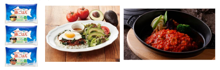 ①双日ロイヤルフライトケイタリングが提供する「機内食シェフ監修の旅ごはんシリーズ」で販売中(写真左)(※3)