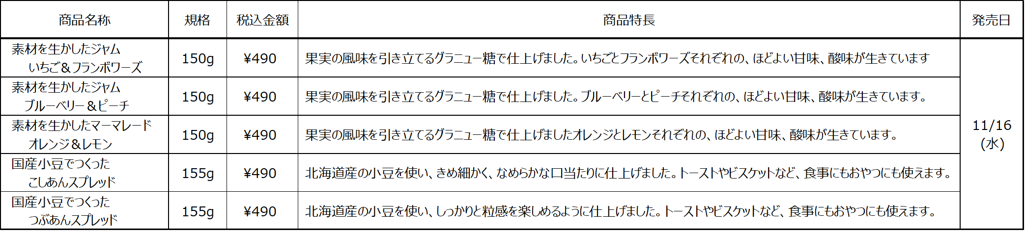 無印良品を展開する株式会社良品計画(東京都豊島区/代表取締役社長 堂前 宣夫)は、生活の基本を担う商品として、毎日の食卓で楽しめるジャムやあんスプレッドなど全5種類を11月16日(水)から全国の無印良品とネットストアで発売します。