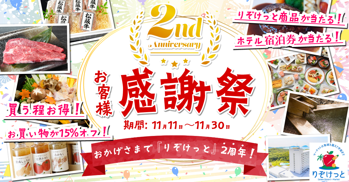 ◆◇ お得が盛りだくさんのりぞけっとの2周年お客様感謝祭はこちら ◆◇