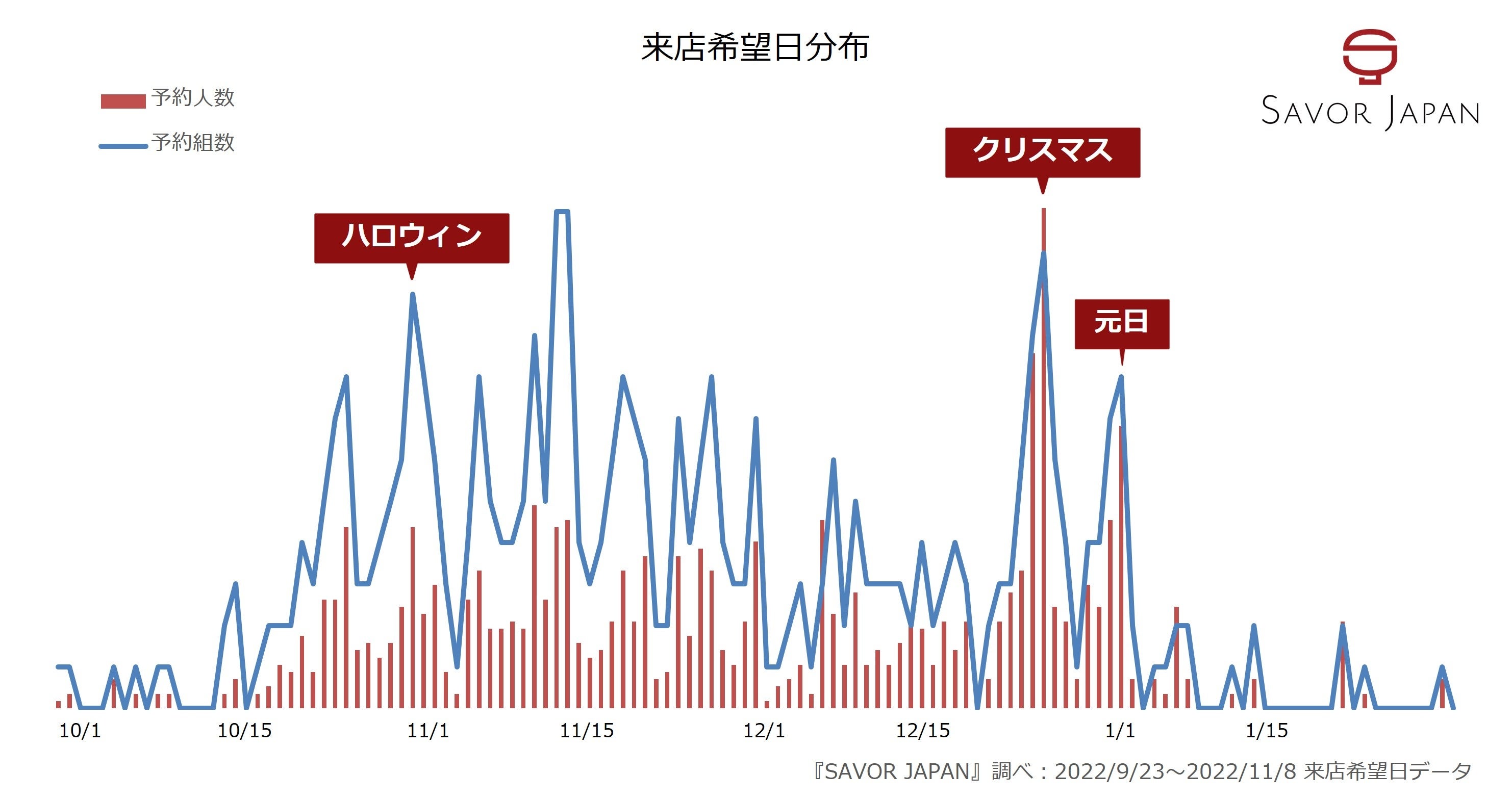 集計対象:『SAVOR JAPAN』を通じて行われた全国の加盟店への予約送信数