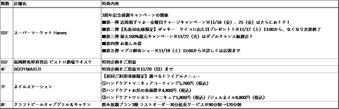 ファッション、雑貨、スポーツアウトドア、ウェルネス、コスメ、美容系サービスなど多数のショップ(1F~7F)から、多国籍なレストラン・ダイニングが揃うLINKSダイニング(8F)、こだわりの食品食材を集めた食のエンターテインメントスペース Eat&Walk(B1F)まで、バラエティ豊富な85のショップから3周年限定のお得なサービスが登場。