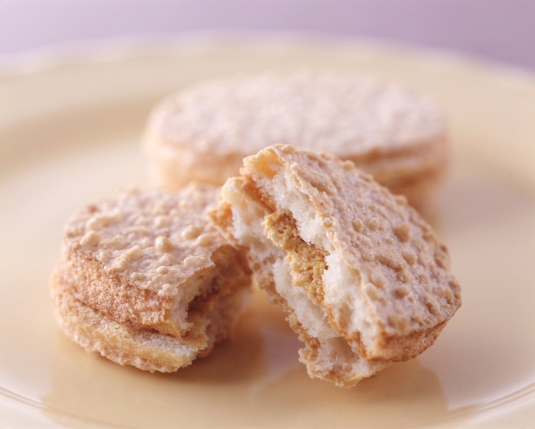 ダックワーズは、福岡の名店「16区」のオーナーパティシエでもある三嶋隆夫氏(ムッシュ三嶋)が、フランス・パリの菓子店でシェフを務めていた 1979 年に考案したお菓子です。それまではこのアーモンド生地は生菓子として、あるいはホールケーキの底に敷く使われ方をしていました。「これを和菓子の最中に相当するものにできたら、新感覚の焼き菓子ができるのではないか」。そう考え試行錯誤を繰り返し、外がパリッとして、中がフワッとした食感のダックワーズを生み出しました。その評判はフランスにも及び、その味に惚れ込んだパティシエがフランスから福岡にはるばる訪れるほど。今では日本国内はもちろん、フランスでも作られるまでに成長しました。