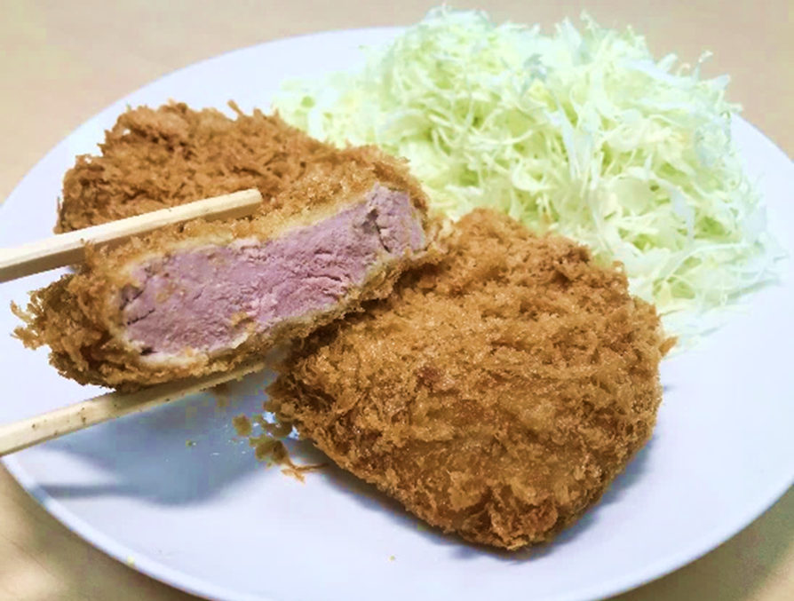 お箸で切れるヒレかつを贅沢な厚切りに!やわらかな食感と自家製パン粉のサクサク感がたまらない絶品カツです。今日はちょっと贅沢したい、そんな日の晩御飯にオススメの一品です。