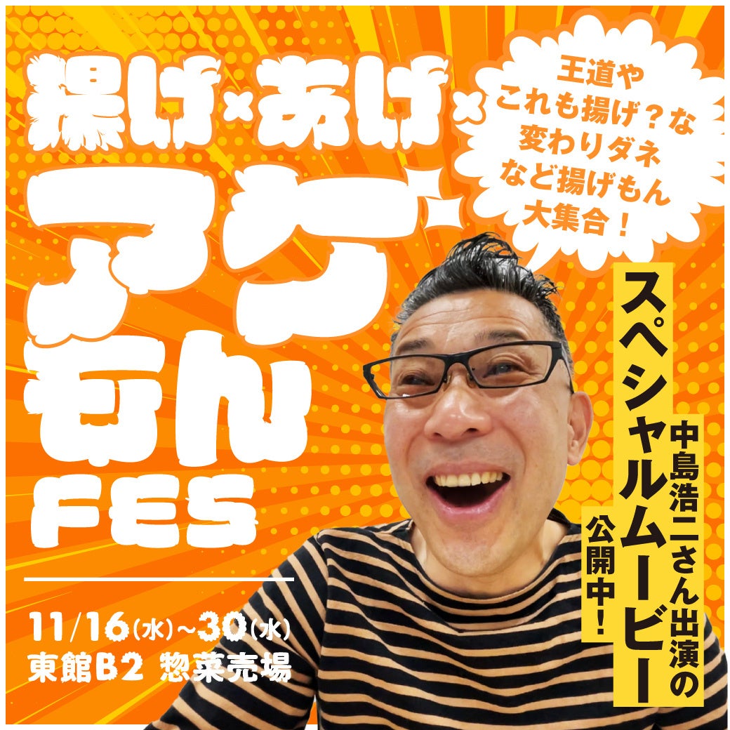 人気タレント 中島浩二が、デパ地下スタッフオススの様々な「揚げ物」を食します!こんな「アゲ」があったのか!?とテンション“あげ あげ”で中島さんがご紹介!思わず食べたくなる揚げ物ばかりです!中には、デリバリーでお届けできる商品もありますので、動画とブログを要チェックです。