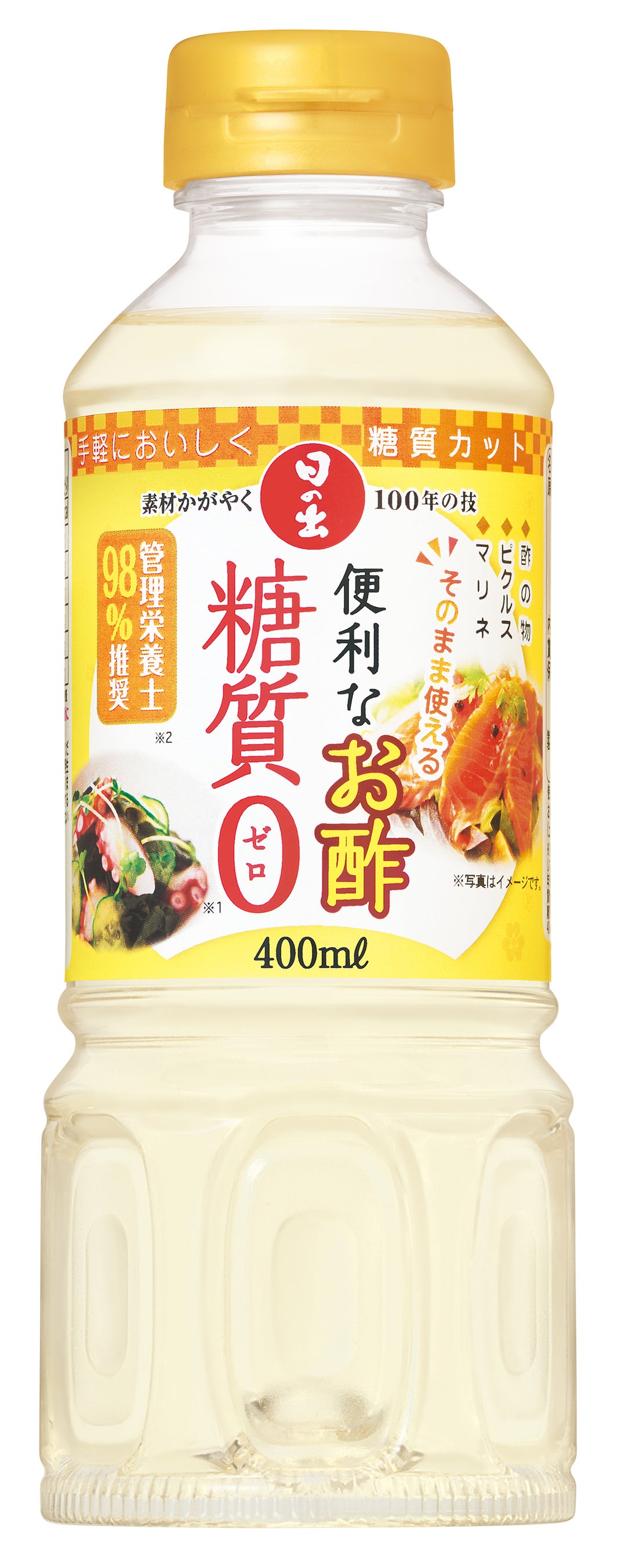 糖質がゼロ※で、昆布の旨みを利かせた、そのまま使える甘い調味酢(合わせ酢)。酢の物、ピクルス、マリネなど、これ1本でいろいろな料理が簡単に作れます。