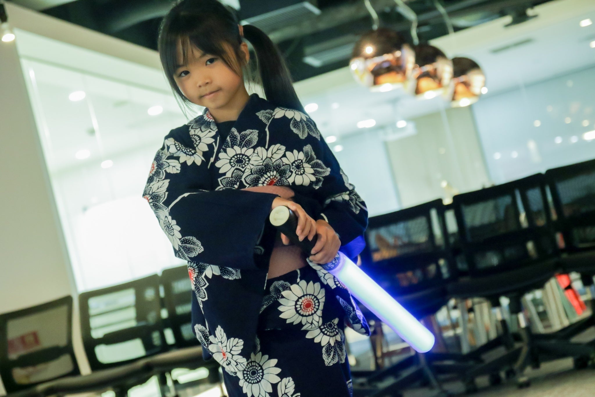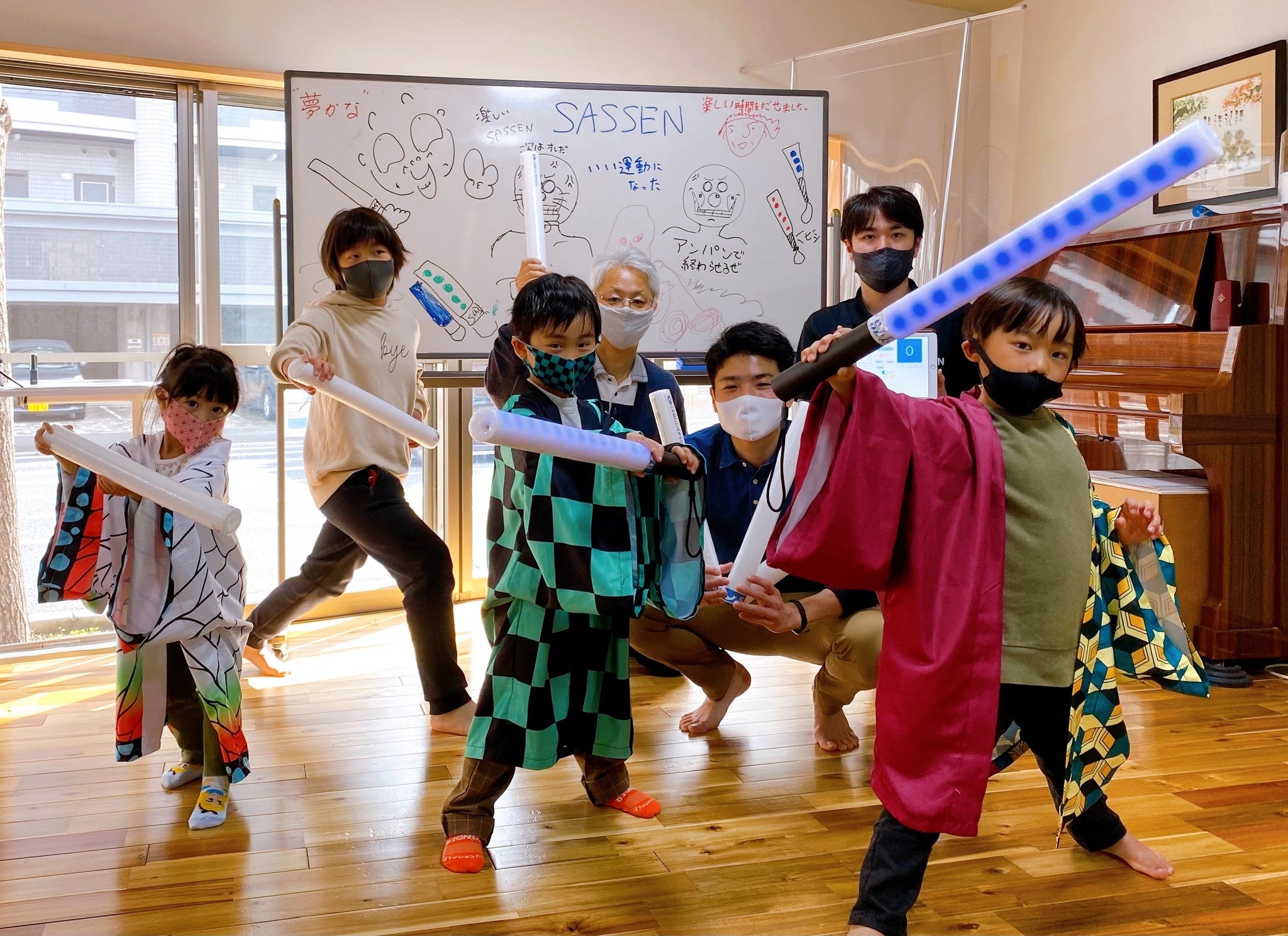 使うのはSASSEN刀だけなので、⻤滅の刃やSTARWARSなどのコスプレを邪魔することがない。保護者は光る刀を持たせて写真を撮るなど「見栄え」も魅力だ。
