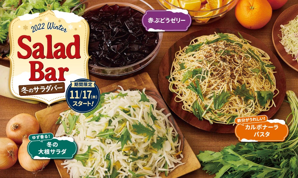 株式会社ビッグボーイジャパン(代表取締役社長:長久保 文康 本社:東京都港区)が展開するファミリーレストラン「ビッグボーイ」「ヴィクトリアステーション」では、11月17日(木)より、新鮮な生野菜や季節のフルーツなど常時16種類以上をそろえるサラダバーに、大根やゆず、水菜など冬が旬の食材を使ったメニューが登場します。
