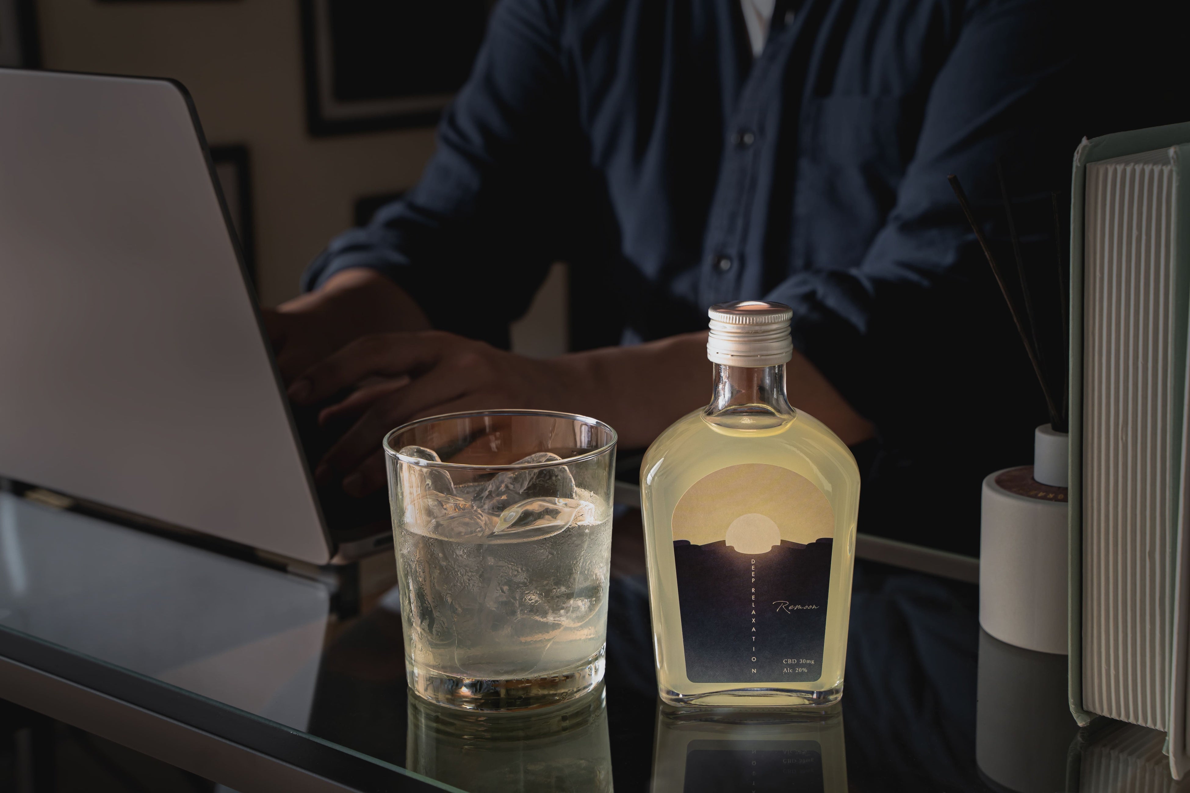 Remoonは、頭も身体も日々フル活用して働いているビジネスパーソンに向けたCBD配合の焼酎リキュールです。