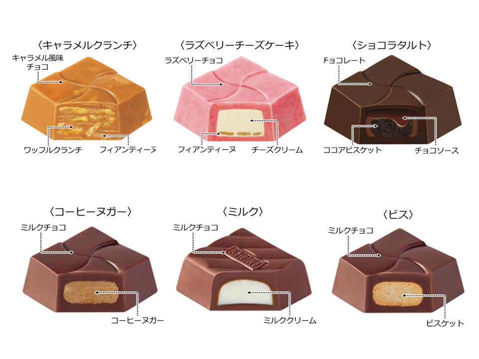 発売5年目を迎える大人気の大容量40個入り商品♪限定の「キャラメルクランチ」と「ラズベリーチーズケーキ」を含む、全6種類の味が楽しめるアソート商品です。
