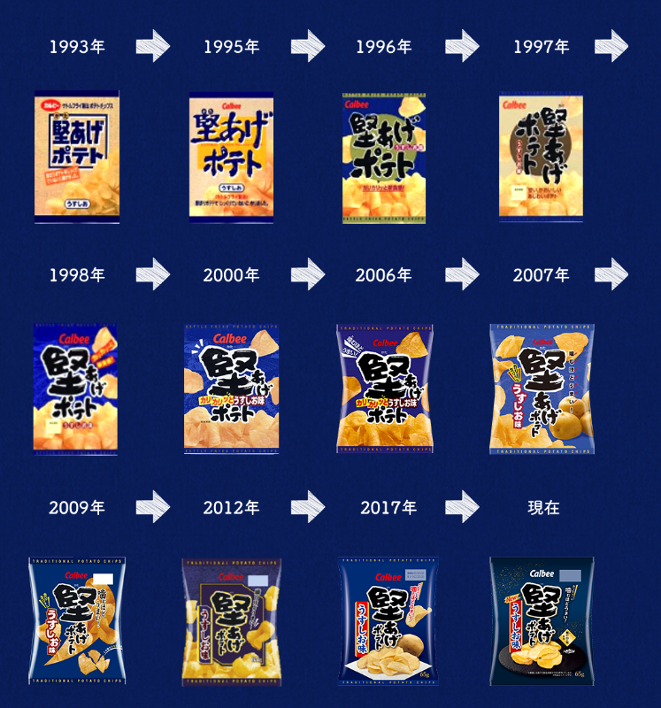 この度11月8日の「堅あげポテトの日」に、「堅あげポテト」が発売30年目を迎えるにあたり、さらに愛されるブランドを目指し、5年ぶりにリニューアルする運びとなりました。お客様への調査を踏まえ、「堅あげポテト」が大切にしている“こだわりの和の世界観”を追求。『堅あげポテト うすしお味』は素材によりこだわり、これまで以上に噛むほどにジャガイモのおいしさが口の中に広がる味わいを実現し、パッケージも一新しました。合わせて、ほかのフレーバーもパッケージデザインをリニューアルします。