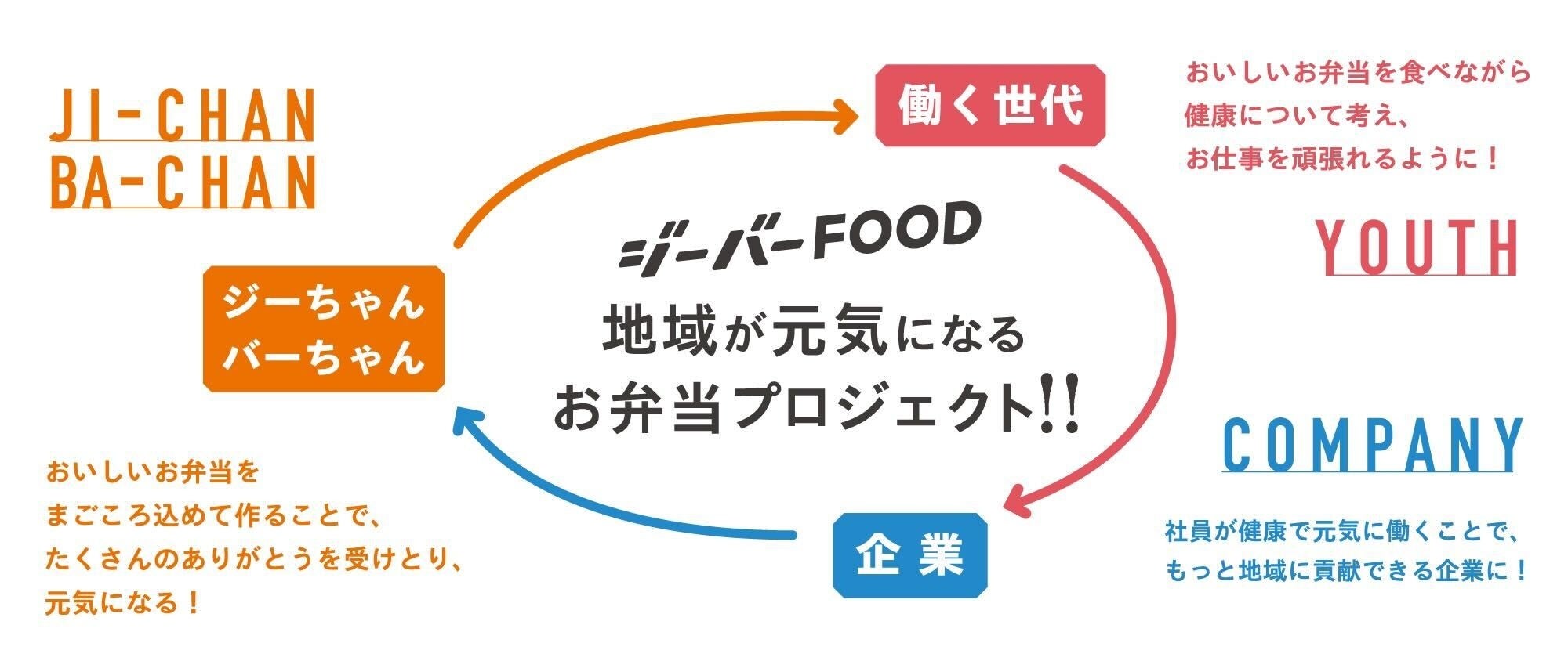 MIKAWAYA21とユカリエが、日々シニアの方々と触れ合う中で、「時間を有効に活用したい」「まだまだ元気!もっと働きたい」「新しいことにチャレンジしたい」「人や社会の役に立つことがしたい」といった相談を受けることが増えていきました。また、宮城県仙台市太白区長町・長町商店街会長より、「管理しているビルを地域のために役立てたい」「このビルをベースに、地域に貢献できる事業を創出できないか」という相談もありました。こうした相談から、「仙台の“爺ちゃん婆ちゃんたち”が作ったお弁当を仙台の“働く世代”に届ける」ことによりシニア・企業・地域のいずれもが生き生きと元気になる事業を目指し、「ジーバーFOOD」をスタートする運びとなりました。