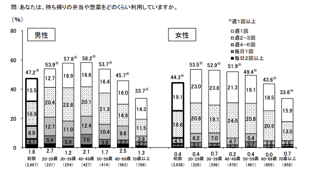 ・働く世代の持ち帰りの弁当・惣菜利用頻度が高い