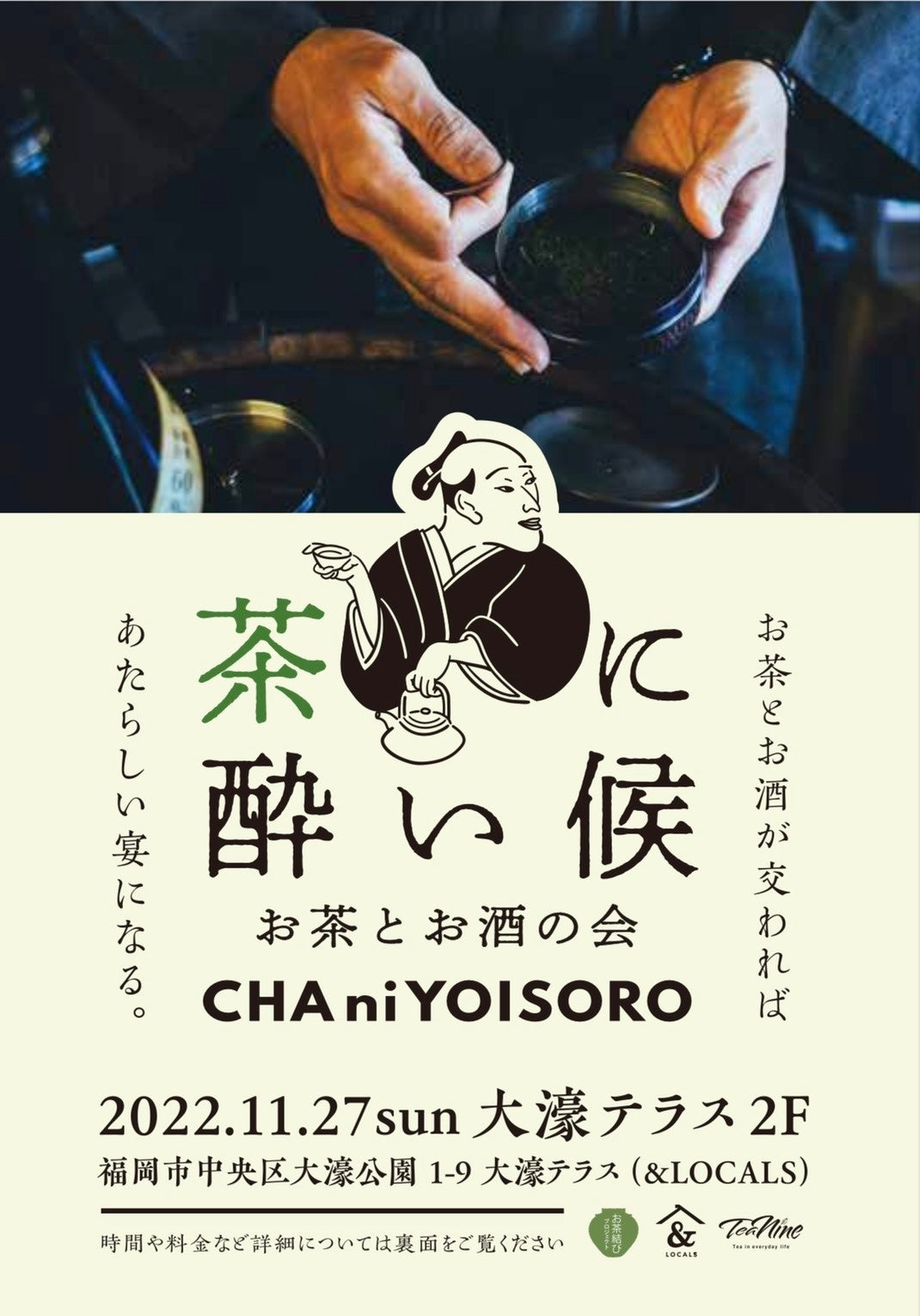 お茶結びプロジェクトが提案する新しいお茶のカタチ【茶に酔い候(ちゃ に よい そうろう)】イベントが11月27日(日)に大濠公園内 大濠テラス2Fにて1日限定開催。九州産食材を使用したフードペアリングを交えて、茶と酒を融合した新たな「人が安らぐ」時間を八女茶のコースで体験していただきます。お茶とお酒のよい関係を学びつつ日本茶と日本酒の新たなるチル体験をご堪能ください。