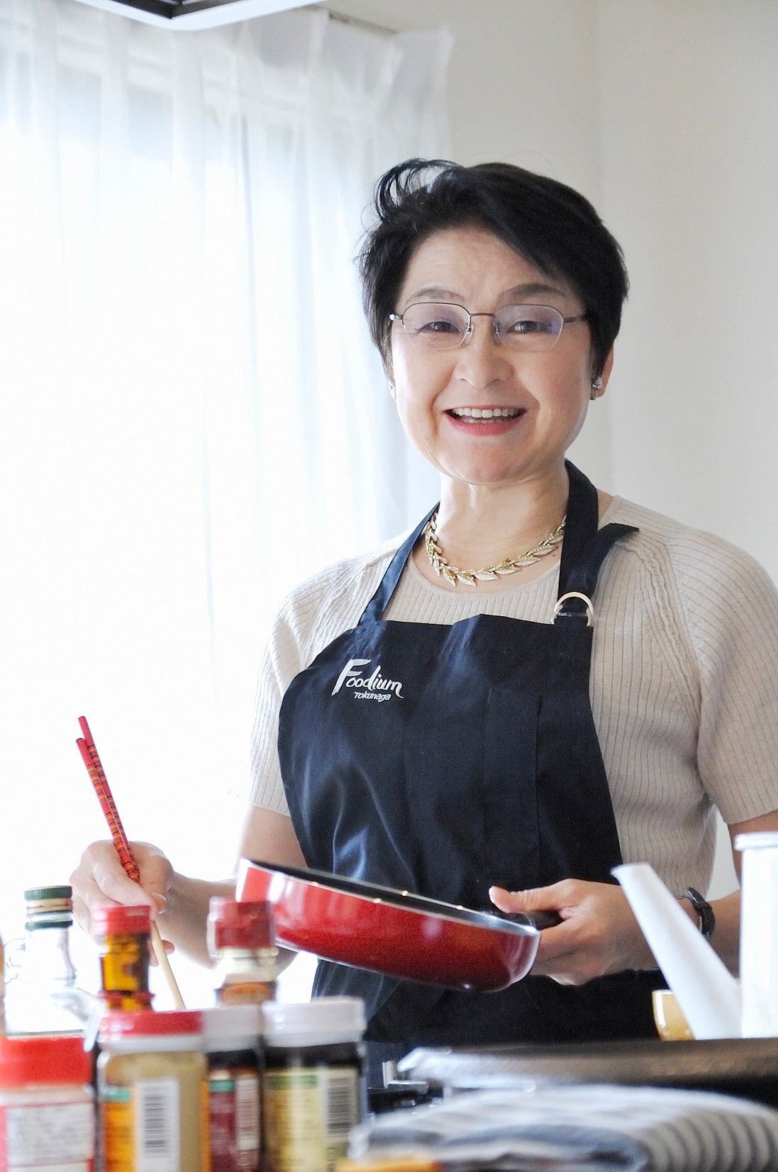 福岡県在住の料理研究家。家庭料理の味を伝承するとともに、日本人の心と身体・健康にとっての⾷育・茶育の⼤切さを説き続けている。