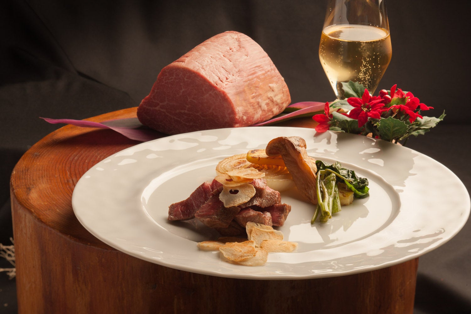 全国各地から良質な和牛を取り揃える、鉄板焼「けやき」では、メインディッシュの鉄板焼コースをご用意。メインディッシュは黒毛和牛から、柔らかい赤身の中のきめ細かなサシが特徴の「A-5ランク佐賀牛」、言わずと知れたブランド和牛の代名詞であり、海外でも高く評価される最高級の「神戸牛」へのアップグレードも可能です。