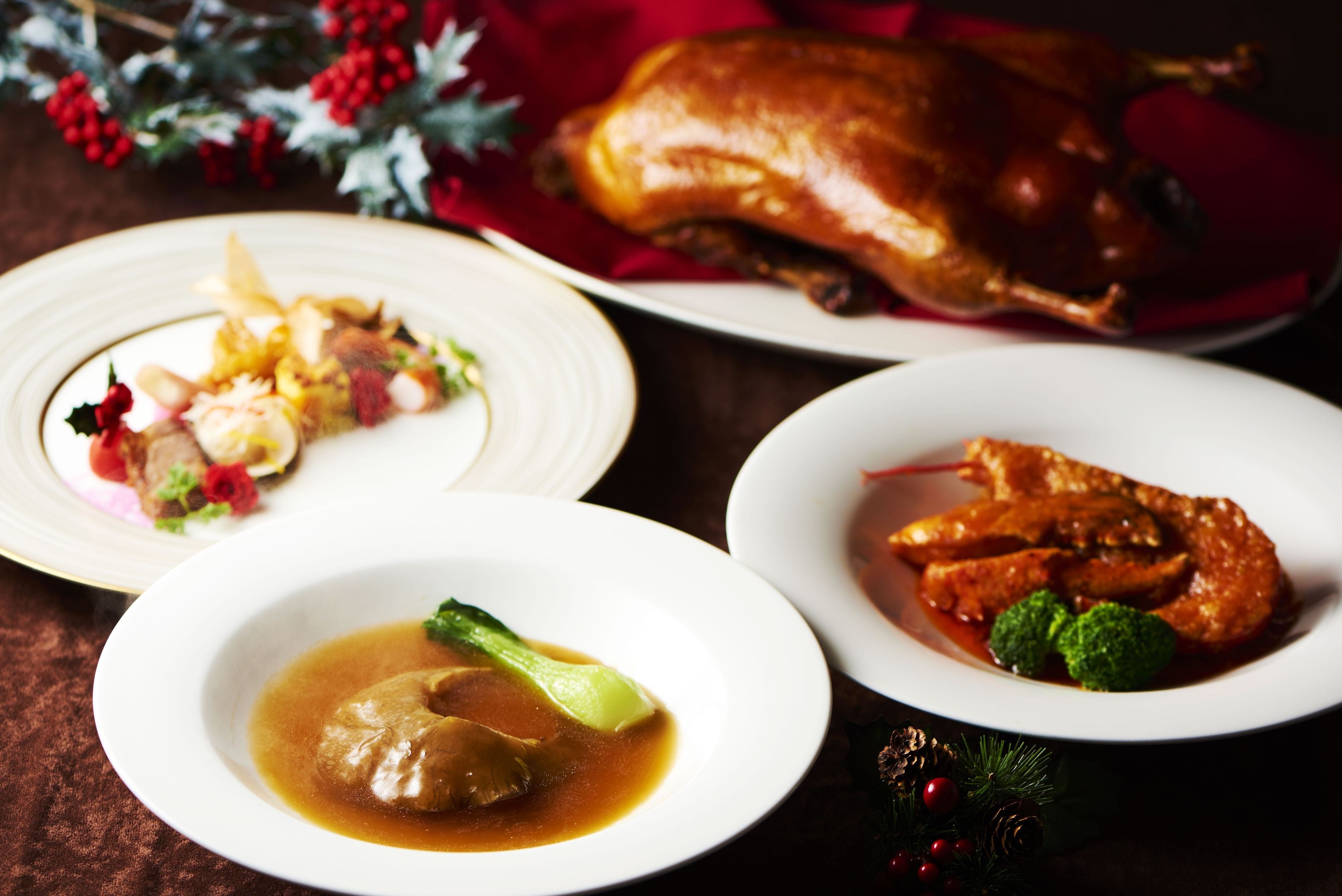 本格上海料理が愉しめる中国料理「大観苑」では、ふかひれ料理や北京ダックなど王道の中国料理をはじめ、肉厚なオマール海老のチリソース炒め、和牛と鮑を使用した一品など、上質食材で味わう、クリスマス限定の贅沢なディナーコースをご用意いたしました。高級中国料理の代名詞でもある「北京ダック」は、中国料理「大観苑」におけるスペシャリテの1つ。パリッと焼き上げられたジューシーなダックは、一度食べたら忘れられない味です。