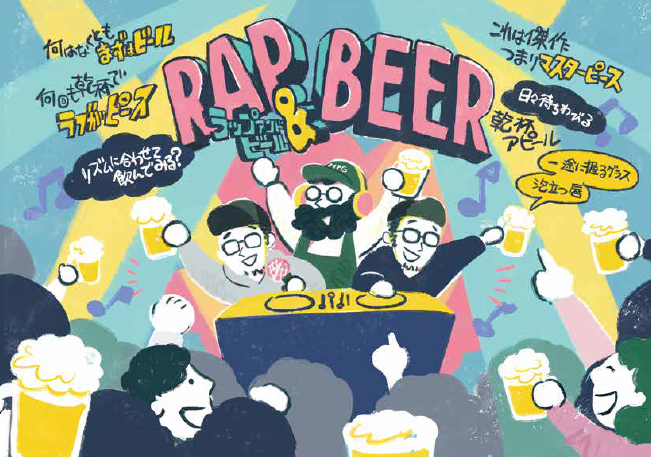 今回発売する「HOPPIN’ GARAGE RAP & BEER」は、ラップグループP.O.P(ピーオーピー)を率いる、ビールが大好きな双子ラッパーの上鈴木兄弟が企画しました。P.O.P が本商品のために書き下ろした新作ラップ「RAP & BEER!!!」を、ビール製造の発酵過程の酵母に聴かせたユーモアあふれる商品です。見た目は似ているのに個性の異なる2つのフレーバーホップをセッションさせた、白ワインにライムをひと搾りしたようなフレッシュでフルーティな香りと、ラップを聴かせたHIPでHOPな味わいが特長のビールです。