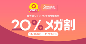 - Qoo10最大のショッピング祭り「20%メガ割」セール開催