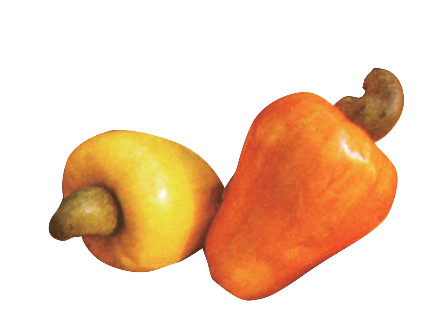 カシューナッツは実はブラジルが原産。ブラジルの伝承や文学、民間療法、食文化などに根差してきた国民的フルーツです。現代では果肉のジュースや炭酸飲料が街なかのスーパーに並び一般的に親しまれています。ナッツになる種子が飛び出た風変わりな見た目が特徴で、実の柄(果柄)が甘く肥大した部分をフルーツとして食べます。ビタミンCが豊富で、甘いリンゴの風味とチーズケーキのような香りをもち、クセになる不思議な味わいが特徴です。