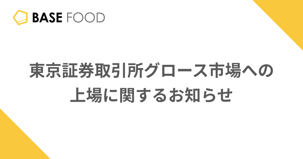 完全栄養※ の主食を開発・販売するベースフード株式会社(本社:東京都目黒区、代表取締役:橋本舜、https://basefood.co.jp/ 、以下「当社」)は、本日、株式会社東京証券取引所(以下、東京証券取引所)グロース市場に上場いたしましたことをお知らせいたします。