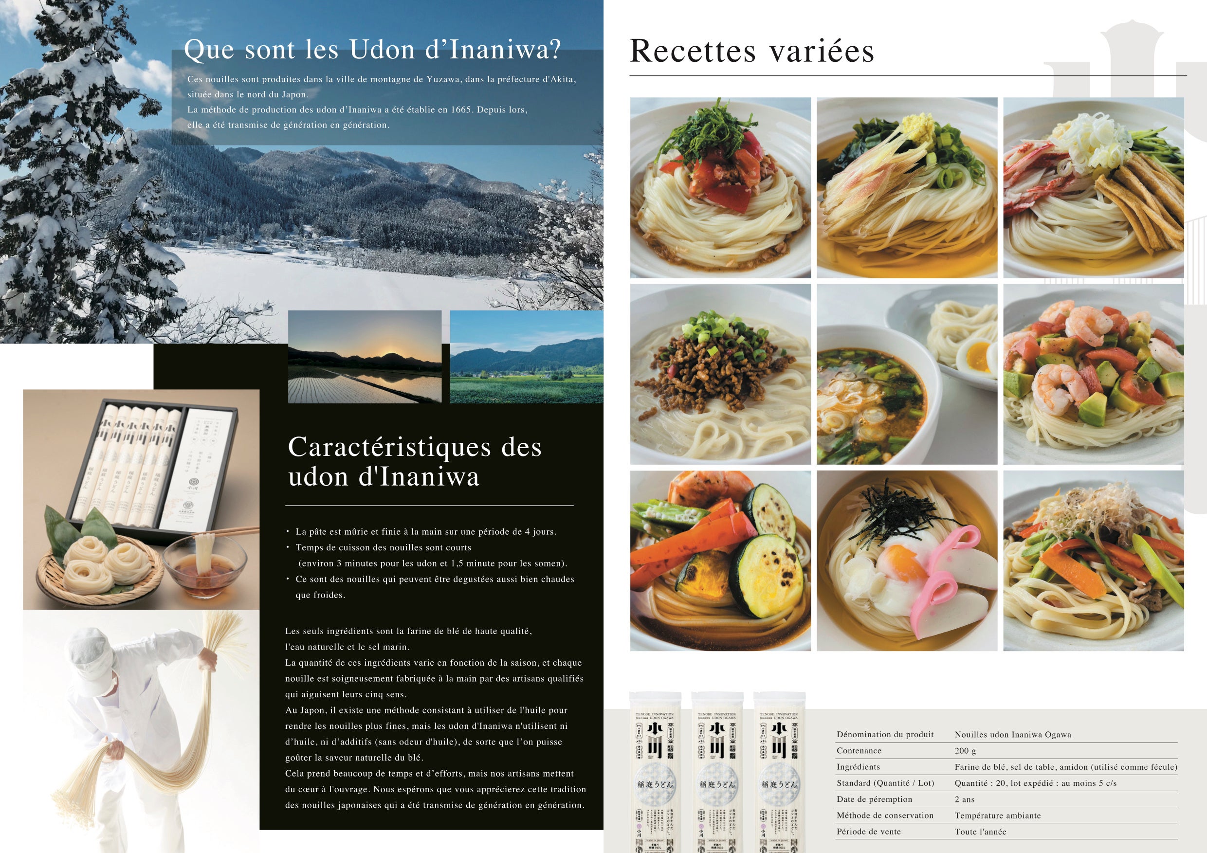 稲庭うどん小川は日本を代表する「手延べ乾麺ブランド」です。「手延べうどん」には手作りだからこそ届けられる美味しさがあります。伝統と歴史を守りつつ、常に美味しさや、食べやすさ、健康面(無添加)を追求し、これからも進化を続けていく革新的なブランドであることを日本をはじめ世界に広く発信していきます。それが「TENOBE INOVATION」です。