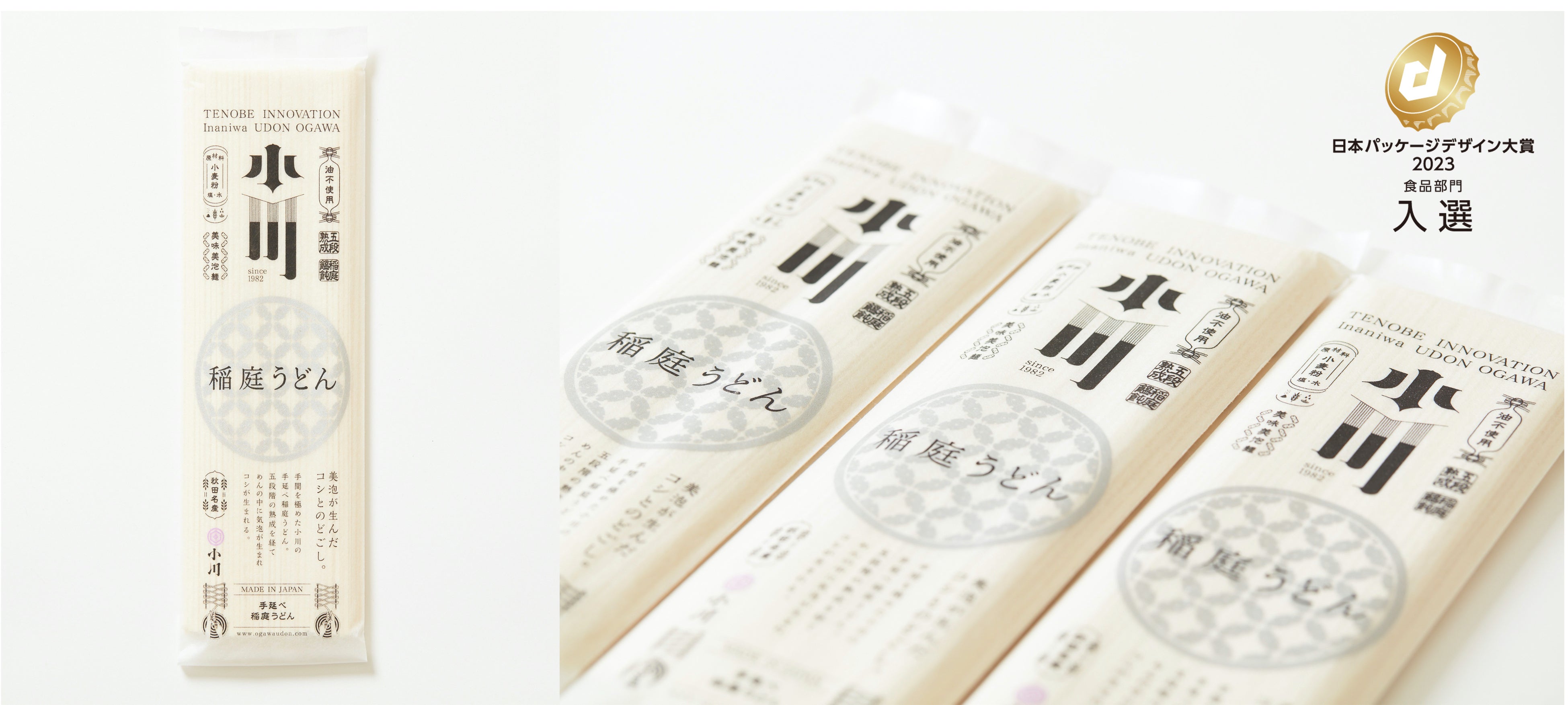 株式会社稲庭うどん小川(秋田県湯沢市)のブランド「小川の稲庭うどん」が、公益社団法人日本パッケージデザイン協会が主催する「日本パッケージデザイン大賞2023」の食品部門において入選しています。