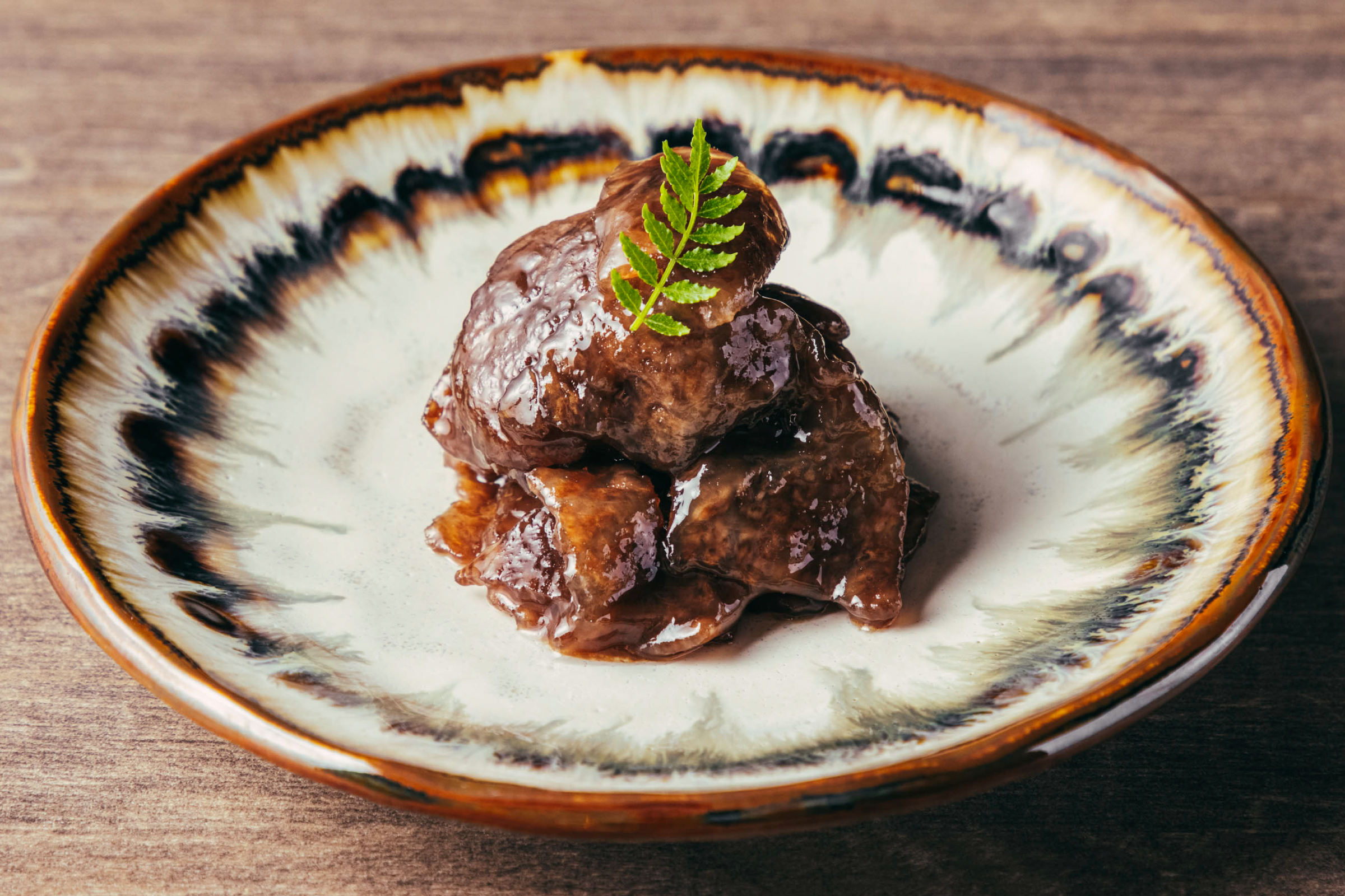 黒胡椒を効かせた特製タレに漬け込んだ厳選赤身肉に低温でじっくりと火を入れて、しっとり仕上げました。噛むほどに感じられる赤身の確かな旨みと柔らかさをご賞味いただけます。