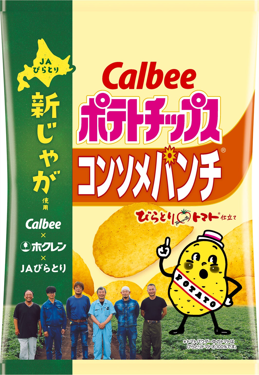 カルビー株式会社(本社:東京都千代田区、代表取締役社長:伊藤 秀二)は、ホクレン農業協同組合連合会(本所:北海道札幌市中央区、代表理事会長:篠原 末治、以下ホクレン)と連携した第3弾商品として、原料ジャガイモの産地を特定した新商品『ポテトチップス うすしお味 JAいしかりの新じゃが使用』と『ポテトチップス コンソメパンチ~びらとりトマト仕立て~JAびらとりの新じゃが使用』を2022年11月21日(月)から北海道で数量限定発売します。※無くなり次第、終了。コンビニエンスストアでの取り扱いはありません。