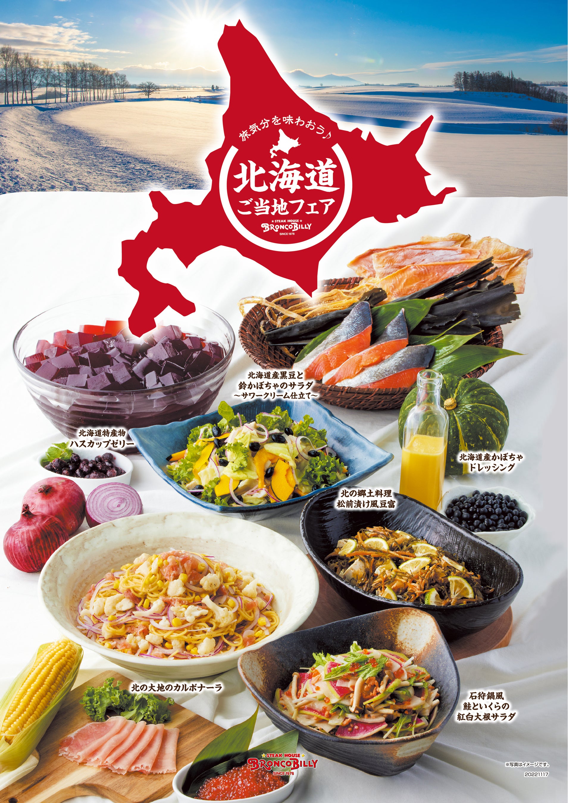 ステーキハウス ブロンコビリーを全131店舗展開する株式会社ブロンコビリー(本社:愛知県名古屋市 代表取締役社長:竹市 克弘)は、ご当地の味をサラダバーで楽しめる大人気企画「ご当地フェア」の第5弾、昨年も大好評の『北海道ご当地フェア』を11月17日(木)より期間限定で開始します。北海道の食材や郷土料理をサラダバーにアレンジした、ブロンコビリーでしか味わえないオリジナルサラダバーをお楽しみください。