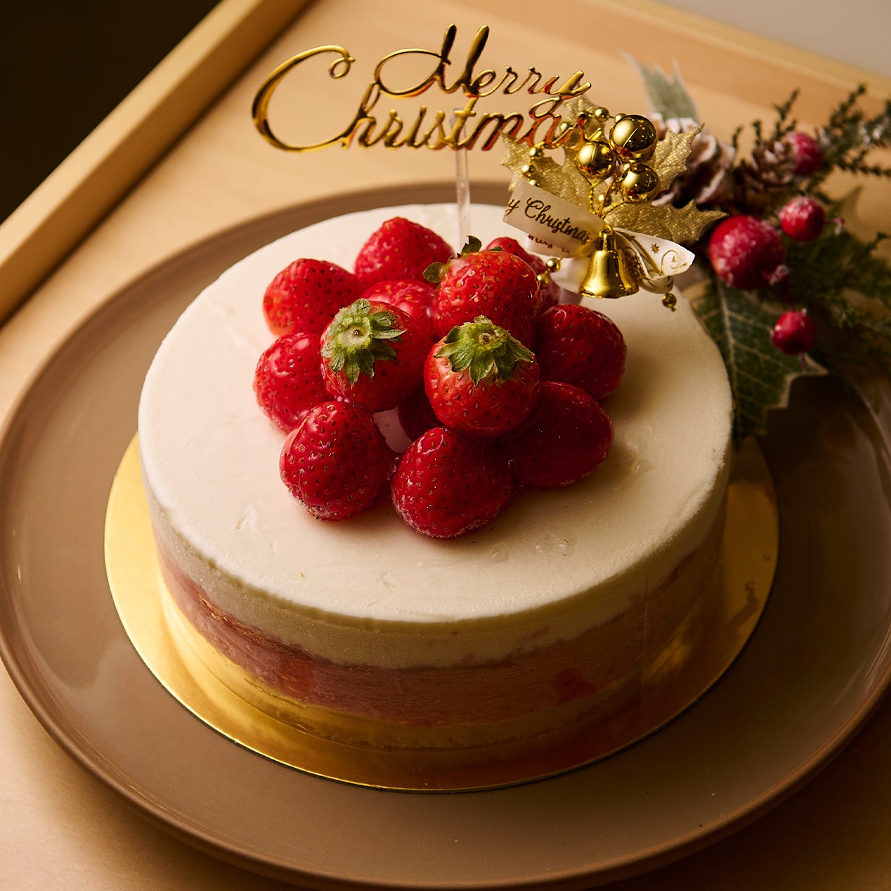 ミルクとイチゴの2種類のジェラートをつかったアイスケーキ。今年はジェラートの層の間に、マイクロドライストロベリーを入れて、イチゴ感を存分に味わえます。