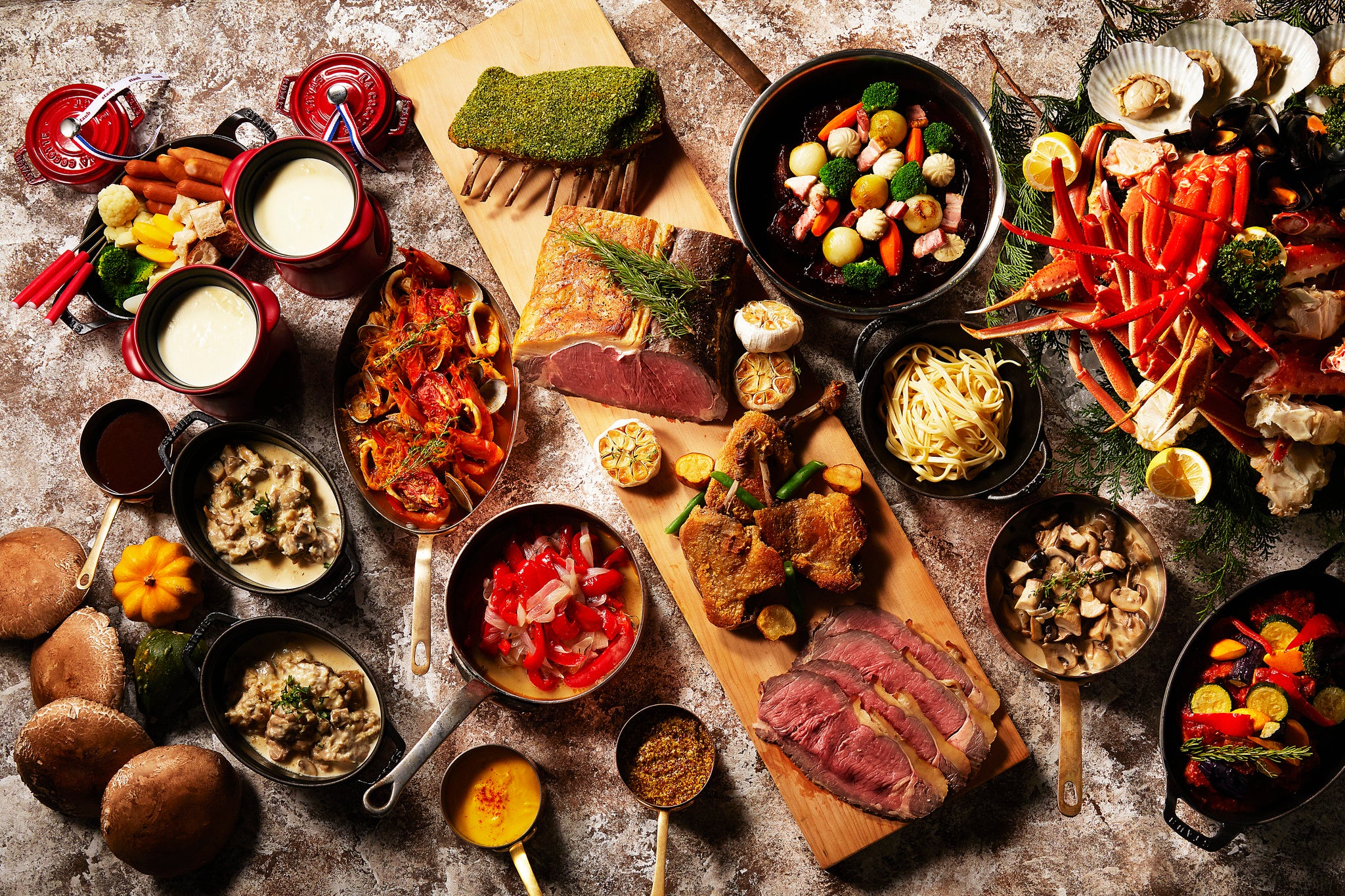 フランスの伝統的なお料理からモダンスタイルのお料理まで幅広く取り揃えた贅沢なブッフェ。フランスへの旅気分をご家族や大切な方とお楽しみください。