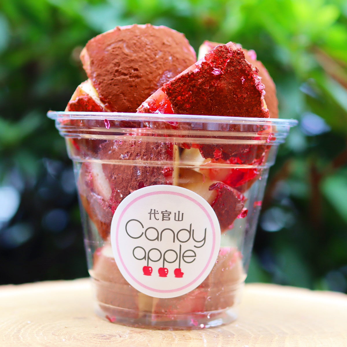 - 常設店で食べられる、食べ歩き用りんご飴「カットテイク」