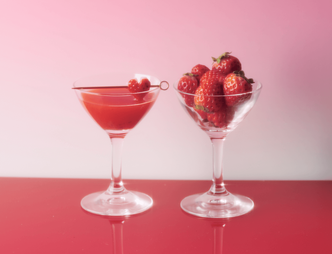 濃厚ないちごを少しずつ飲むのにふさわしい、ショートカクテルグラスをご用意。